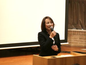 開会後、洗足学園を代表して登壇した宮阪校長は、洗足学園の創設者の思い・創立の理念から、現在の学園の取り組みに至るまで、本校の教育内容をわかりやすく説明いたしました。