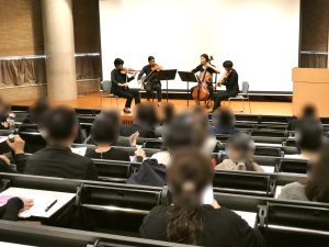 説明会開会前には、本学園卒業生による弦楽四重奏が演奏されました。